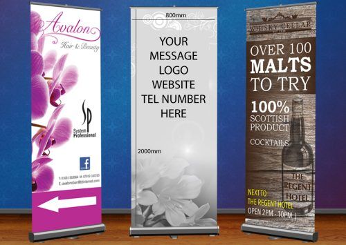 Pop Up Banners or Roller Banners begin at 800mm wide and are all 2000mm high.